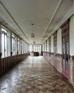 La piedra y el cristal, son los dos elementos principales de este palacio, ventanas acristaladas a la manera de galerías, que dejan pasar la luz convirtiendo el interior en un corredor en que penetra el jardín.